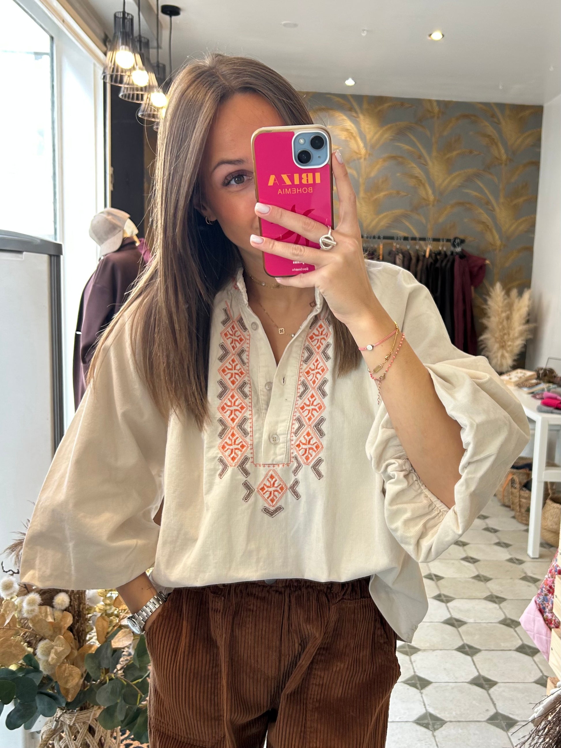 - Blouse en velours avec des broderies Johanna Paris