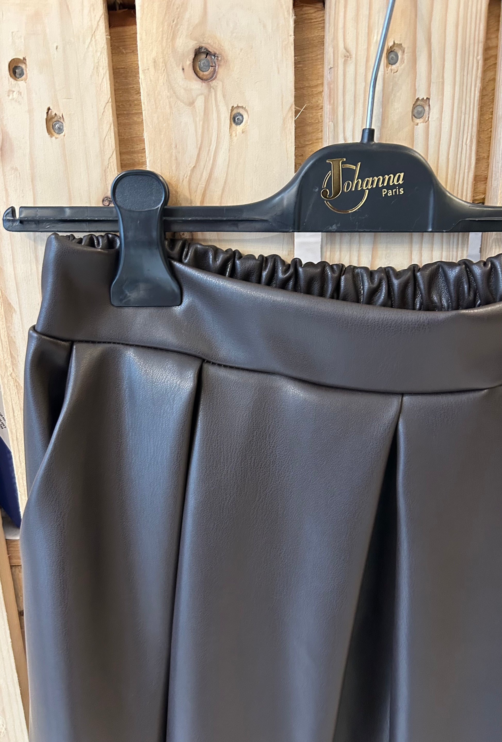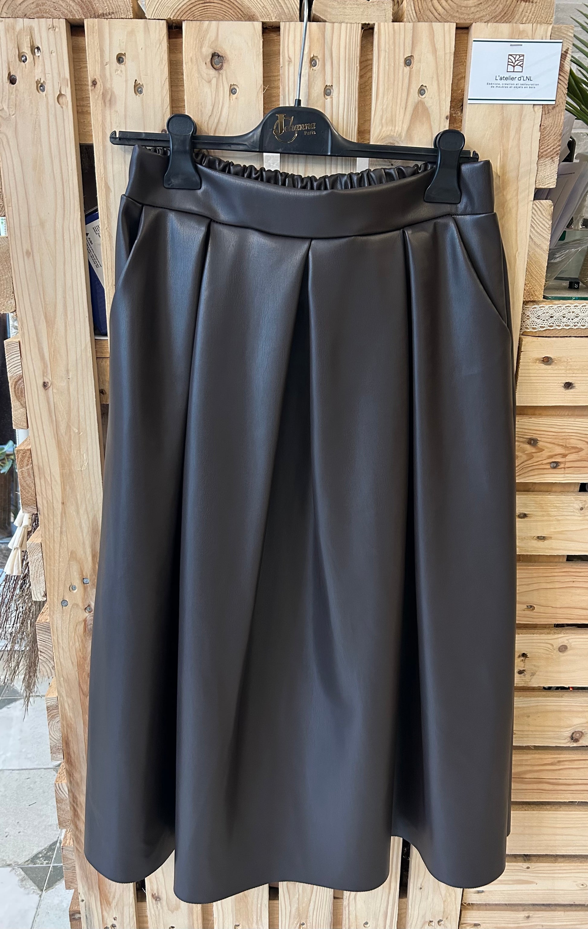 Jupe longue Marlène en simili-cuir chocolat - Johanna Paris
