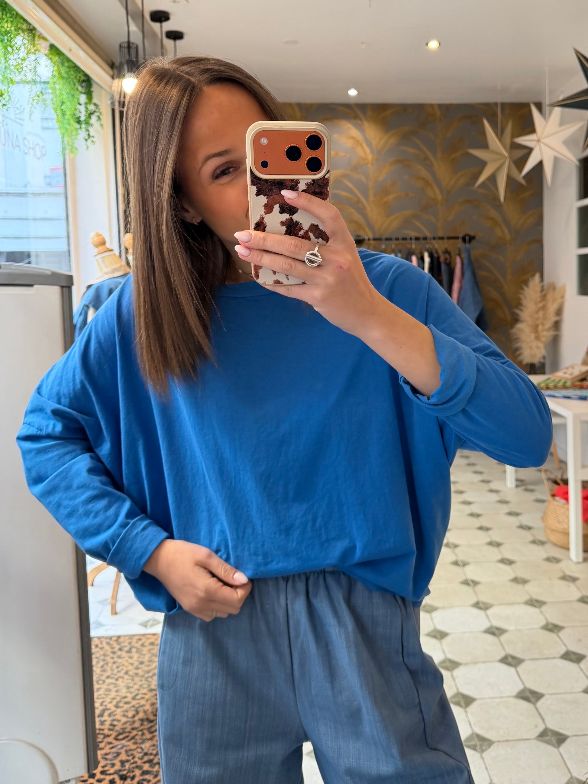 T-Shirt Col Bateau bleu royal - Johanna Paris